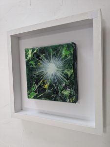 Shine A Light captures the quiet power of nature illuminated from within. Layers of deep greens and textured brushstrokes radiate around a burst of white light, evoking a sense of renewal, energy, and transcendence. The piece invites viewers to pause, breathe, and feel the subtle harmony between shadow and brilliance.