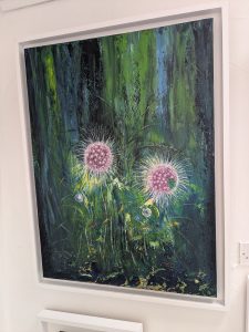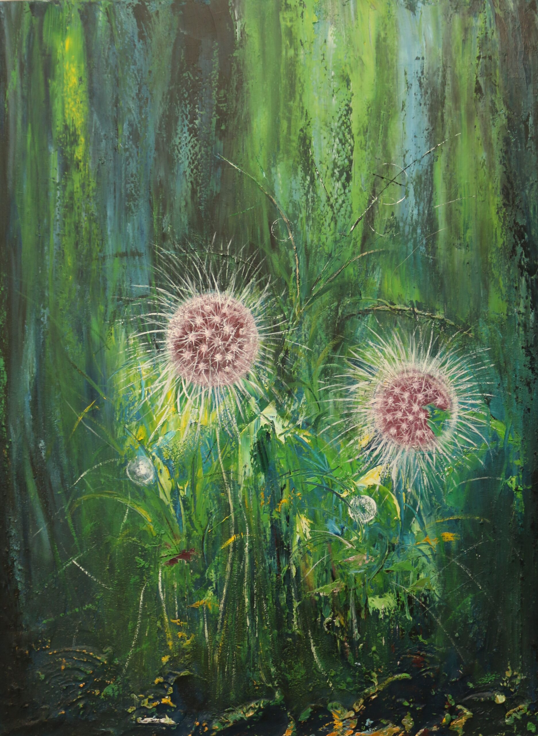 In Spider Pink, vibrant greens are blended with delicate bursts of pink and white, echoing the fleeting elegance of wildflowers in bloom. The radiating forms suggest both fragility and strength, capturing the mystery of nature’s hidden patterns. A piece that invites contemplation, it celebrates the quiet beauty found in overlooked places. There is magic in there.