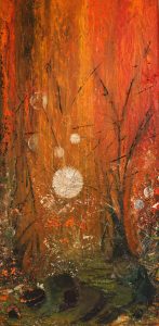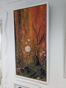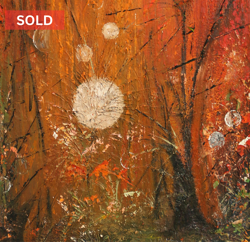 ‘Textured Wood’ is a mystical, textured woodland painting filled with warm autumn tones, glowing orbs, and rich natural depth. A captivating abstract forest artwork that blends earthy colour, layered texture, and atmospheric magic.